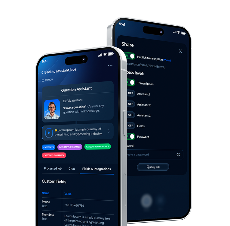 Assistants can also be integrated with your work tools — thanks to this, processed information is automatically transferred, for example, to your CRM, project management tools, or other applications you use every day.